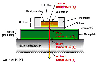 Heat management and an awareness of the operating environment are critical considerations to the design and application of LED luminaires for general illumination. Successful products will use superior heat sink designs to dissipate heat, and minimize junction temperature. The size of the heat sink is dependent upon the amount of heat to be dissipated and the material's thermal properties. Keeping the junction temperature as low as possible and within manufacturer specifications is necessary in order to maximize the performance potential of LEDs."